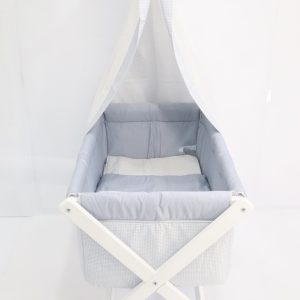 SMALL BED X WOOD+CANOPY VICHY 10 BLUE