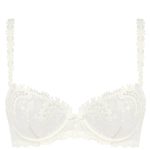 Embroidered half-cup bra with guipure lace and jacquard satin with underwire.