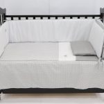 The Cambrass 4-piece set includes coverlet (70x130cm.), bumper (67x67x40 cm.), flat sheet (110×115 cm.) andpillow (24×40 cm.), all suitable for cribs measuring both 60 as well as 70 cm.This is a full set with all of the elements necessary for the baby to rest securely and comfortably. In addition toperforming a decorative function coordinated with the rest of the set, the coverlet covers the baby, maintainingits body heat and protecting it from the cold, while the bumper prevents it from bumping against the sides.