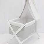 The Cambrass cross-legged cradle is made with beech wood and is equipped with a canopy. It enables the baby to sleep in any room of the house during its first months, thanks to the mobility provided by the wheels (with a brake). The canopy plays a decorative role, as it can be coordinated with the colours of the room, as well as creating a cosy atmosphere conducive to sleeping, as it prevents excessive light from disturbing the baby.Other aspects making this cradle particularly functional, in addition to including a pillow, mattress and 5 mm wooden support, are: its wooden frame available in two colours (natural and white) and its bedding which includes the coverlet with removable filling for washing or for winter / summer use.