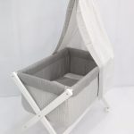 The Cambrass cross-legged cradle is made with beech wood and is equipped with a canopy. It enables the baby to sleep in any room of the house during its first months, thanks to the mobility provided by the wheels (with a brake). The canopy plays a decorative role, as it can be coordinated with the colours of the room, as well as creating a cosy atmosphere conducive to sleeping, as it prevents excessive light from disturbing the baby.Other aspects making this cradle particularly functional, in addition to including a pillow, mattress and 5 mm wooden support, are: its wooden frame available in two colours (natural and white) and its bedding which includes the coverlet with removable filling for washing or for winter / summer use.