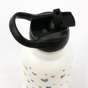Screw cap and flexible handle for easy carrying. Alternatively, the sports cap is available with a changeable silicone nozzle and replaceable straws.